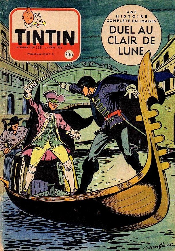 In 1954, Jean Graton left Spirou and joined the rival magazine Tintin, where at first he continued to make historical short stories, but this time was allowed to write his own scripts. As a result, many of his contributions had sports as a theme, and motor sports in particular. In 1957, a selection of these one-shot stories was collected in the comic album 'Ça C'est du Sport' (Lombard, 1957). An early serial by Graton was 'L'Inconnu du Tour de France' (1955), an adventure story with the reporter Max, set around the Tour de France. Together with other Tour-related comic stories, it was collected in a 2003 compilation book of the same name by Graton Éditeur. After a while, Tintin publisher Raymond Leblanc offered Graton a contract to work exclusively for them, and promised the artist he would drive a Ferrari in five years time. Five years later, he indeed did, but it was only once, when he could take the Ferrari of his boss out for a ride.