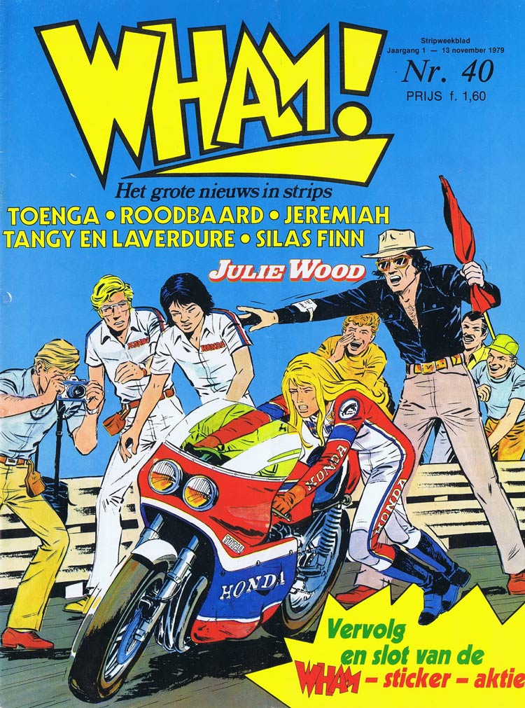Sixteen years old at the start of the series, but gradually aging as the stories progressed, Julie Wood was an orphan girl raised by her Californian uncle Chris. Her ambition was to become a motorcycle champion, and not only fight rival racers, but also prejudices against women participating in motorsports. Julie's brother Indy (named after the Indianapolis 500) also wants to become a motor racer. While Graton wrote and drew most of the 'Julie Wood' stories on his own, he also received assistance from Christian Lippens and particularly from the American artist Scott Wood, who specialized in drawing motorcycles. When Wood returned to the United States in 1980, Graton was forced to discontinue his 'Julie Wood' comic. Two years later, the character of Julie Wood was incorporated into the 'Michel Vaillant' series, where she became the fiancee of Steve Warson.