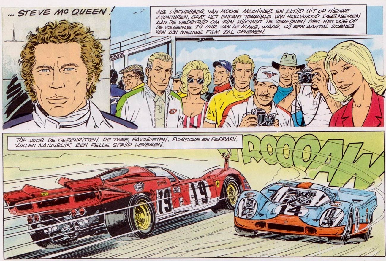 'Dossier Steve McQueen', featuring Hollywood actor Steve McQueen, who was a known race enthusiast in real life. Dutch-language version.