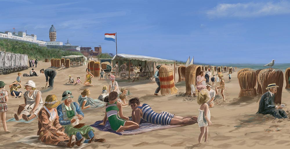 Stefan de Groot is an expert in drawing and painting in an impressionistic and realistic style on the iPad. He spreads his knowledge though books, workshops and with tutorials on his YouTube account 'Stayf Draws', and was invited by Apple to demonstrate their new iPad Pro and Apple Pencil in Amsterdam. Popular projects are his 'LookUp Haarlem' series with details from buildings in his hometown Haarlem, and his multimedia exposition 'We Gaan Naar Zandvoort!', which opened at the Zandvoort Museum in November 2018. With a series of iPad paintings, De Groot retraced the route of the original 1920s tram ride from Amsterdam to the seaside resort Zandvoort, both from a historical and a contemporary perspective. Also part of the exposition is a large panorama of the town's recreational beach life in 1928. In 2020, he released the book 'Het Spaarne Stroomt', an ode to his hometown Haarlem with watercolor paintings based on the city's cultural life in the past 50 years. The paintings were made for an animation to the 1973 song 'Het Spaarne (Stroomt Voorbij)' by Boudewijn de Groot and Lennart Nijgh, which is part of the permanent exhibition in the Museum Haarlem.