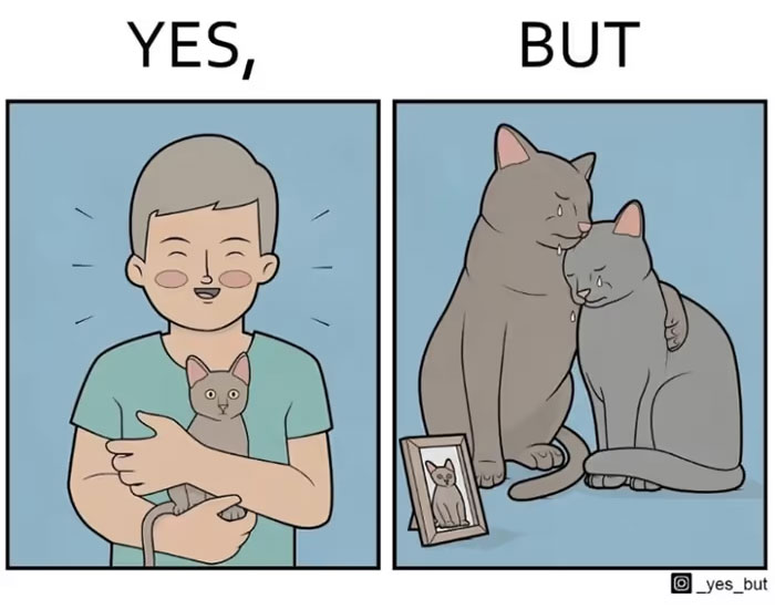 Antоn Gudim is a Russian amateur cartoonist, who has gained a wide online following with his pantomime comic strips that play with expectations and visual puns. Since 2021, several of his cartoons have run under the title 'Yes... But', a two-panel comic series.