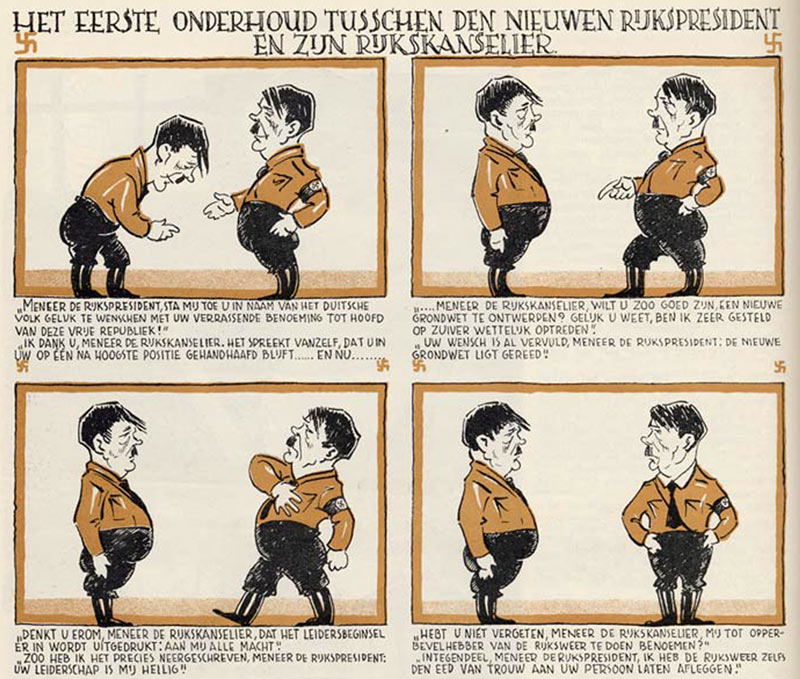 Part of a comic strip spoofing Adolf Hitler, published in De Notenkraker in 1933.
