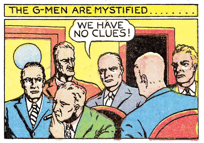 Panel from the Stardust story 'Wolf Eye's Vacuum Tubes' (Fantastic Comics #5, April 1940). The man in the front with the cigarette is a self-portrait by Fletcher Hanks.