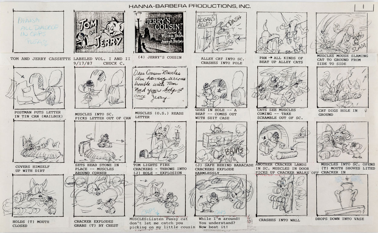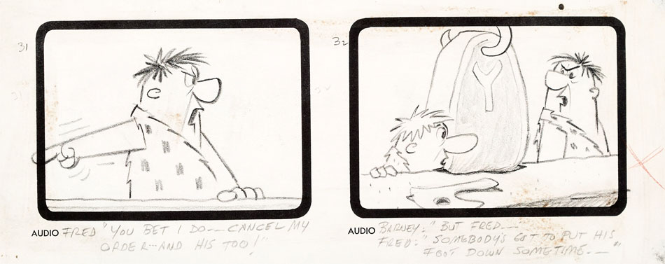 Storyboard for the 1961 'Flintstones' episode 'Snorkasaurus Hunter'.