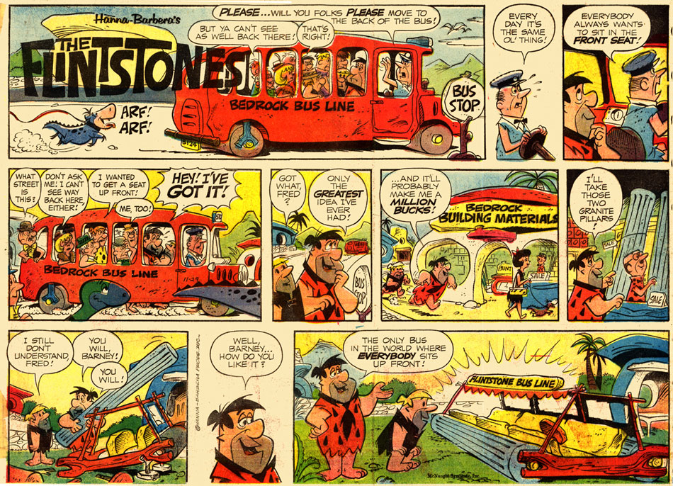 On 2 October 1961, 'The Flintstones' received a newspaper comic. Syndicated by McNaught, Gene Hazelton was the lead artist and writer, until Don Sherwood took over in 1986. After McNaught went out of business in 1989, the feature was continued by the Editor Press Service. From 11 April 1994 on, Karen Matchette succeeded Sherwood and continued 'The Flintstones' comic until the final episode was printed on 29 August 1998. Over the decades, many uncredited artists and writers contributed to the 'Flintstones' newspaper comic, including Roger Armstrong, Dick Bickenbach, Tony Di Paola, Harvey Eisenberg, Jerry Eisenberg, Ric Estrada, Dale Hale, Lee Hooper, Ken Hultgren, Jesse Marsh, Joe Messerli, Bob Singer and Iwao Takamoto. Many of these artists also worked on the 'Flintstones' comic book series.