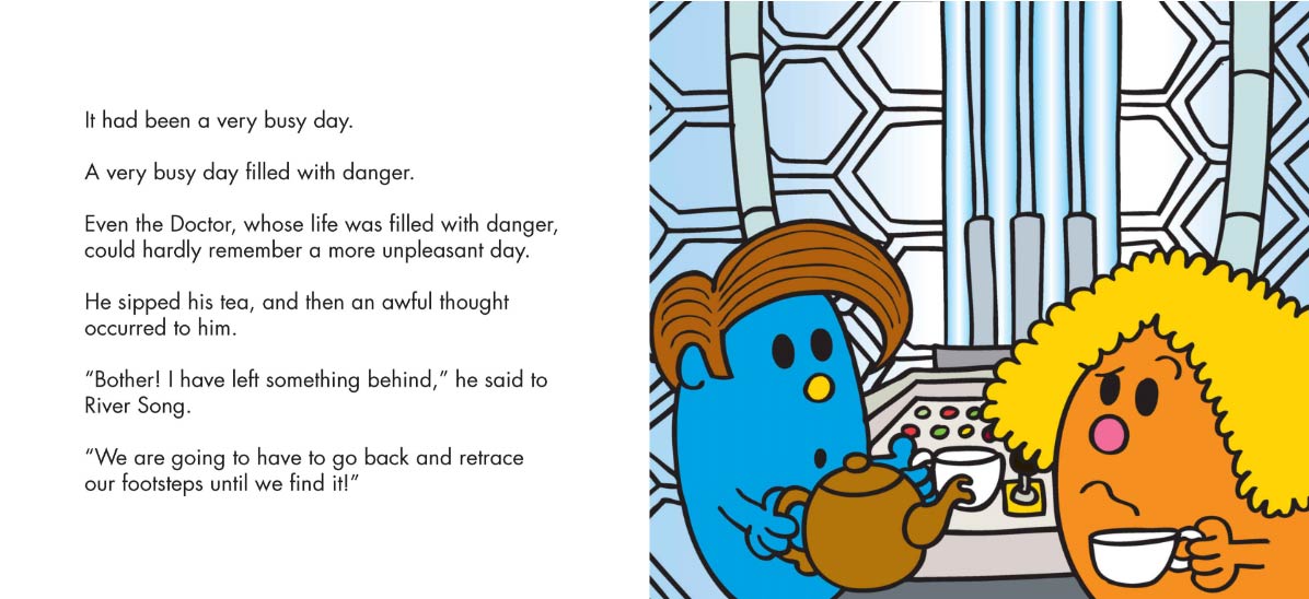 In 2017, Adam Hargreaves also launched a series of storybook mash-ups, which combine the storytelling of the sci-fi TV series 'Doctor Who' with the typical Hargreaves drawing style and humor.