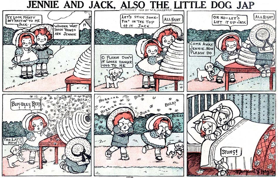 Margaret G. Hays was a 19th-century U.S. children's book writer, illustrator and comic artist. She made several comics in collaboration with her sister Grace Drayton, but also had a comic strip of her own, 'Jennie and Jack, also the Little Dog Jap' (1908).