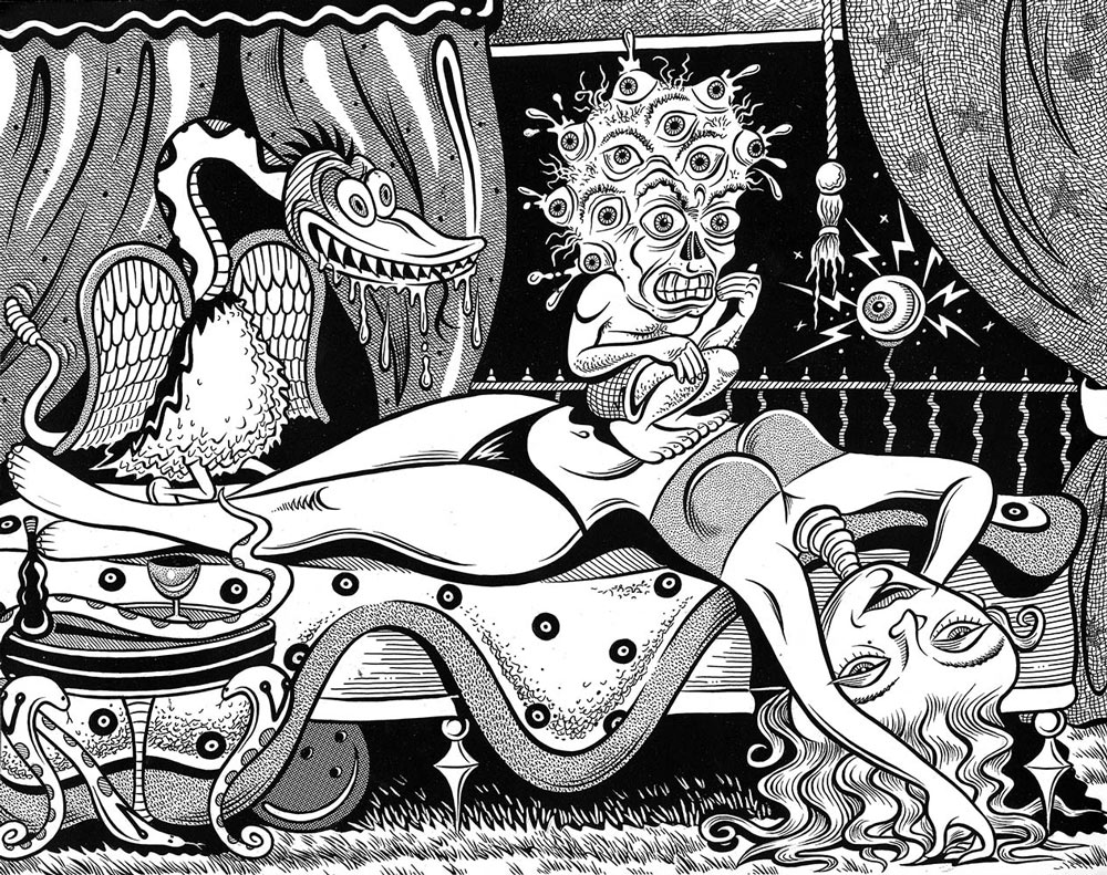 Glenn Head's parody of Henry Füseli's famous painting 'The Nightmare'.