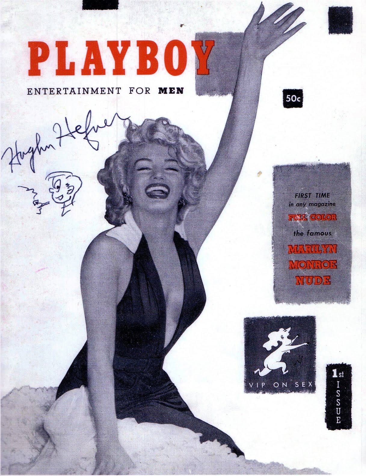 Cover of the first issue of Playboy, with autograph by Hugh Hefner.