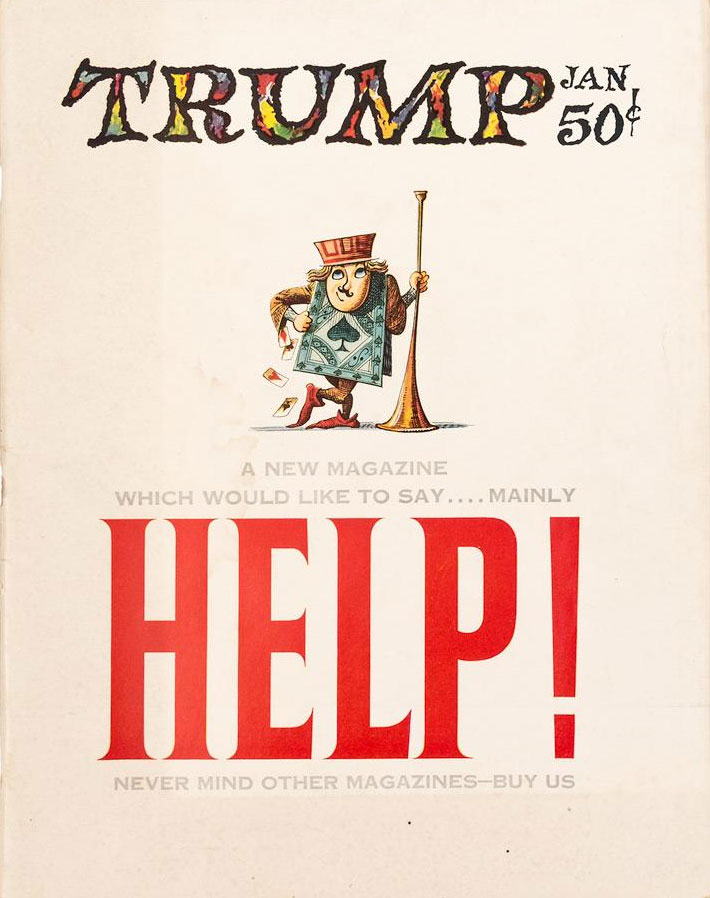 As a huge fan of Harvey Kurtzman, Jack Davis and Wallace Wood, Hefner tried to have these cartoonists sign an exclusive contract to publish in Playboy. In 1956, Kurtzman resigned as Mad Magazine's chief editor after a financial dispute with publisher and co-editor William M. Gaines. Hefner offered Kurtzman a chance to create a new satirical comic magazine aimed at more mature readers, which he would produce. Kurtzman liked the offer, not only because the pay was better, but because Hefner was more open to his ideas than Gaines. In January 1957, the first issue of this new magazine, Trump, rolled from the presses. Just like Mad, it also featured satirical comics, though the format was more luxurious and with more emphasis on jokes about sexual topics. Several Mad cartoonists went on board, among them Jack Davis, but also Will Elder, Al Jaffee and another E.C. Comics regular Russ Heath. Only Wallace Wood eventually decided to stay loyal to Mad since he didn't want to work exclusively for Trump. Among the newer names were R.O. Blechman, Ed Fisher, Irving Geis, Roger Price and Arnold Roth and writers like Max Shulman (famous for 'Dobie Gillis'), Doodles Weaver (a member of Spike Jones' band) and future comedy film director Mel Brooks.