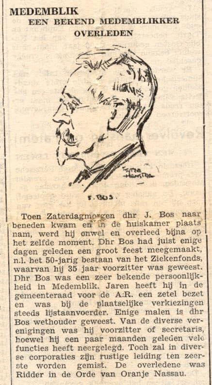 Henstra's 1932 illustration of (former) Medemblik councilman Jan Bos (1871-1952) was reused in Bos' obituary in February 1952 (Bos was, by the way, the great-grandfather of Comiclopedia editor Bas Schuddeboom).
