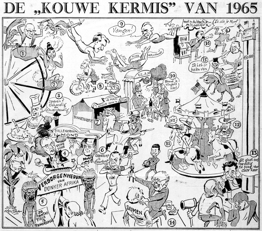 Illustration for a contest regarding the sports news of 1965, published in De Telegraaf on 24 December 1965.