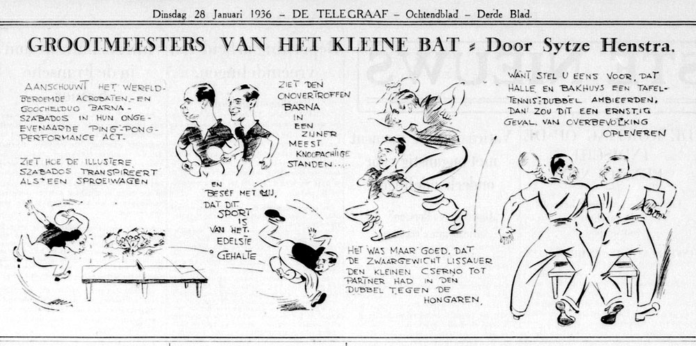 By the mid-1930s, Henstra was living in Amsterdam, where he found employment with national newspaper De Telegraaf. He became the paper's regular sports cartoonist, often commenting on the news of the day in sequential narratives. Henstra contributed to the paper and its companion paper De Courant/Het Nieuws van den Dag on a regular basis until at least the 1960s. By the 1950s, he was one of the best known sports cartoonists in the Netherlands, along with Bob Uschi and Dik Bruynesteyn.