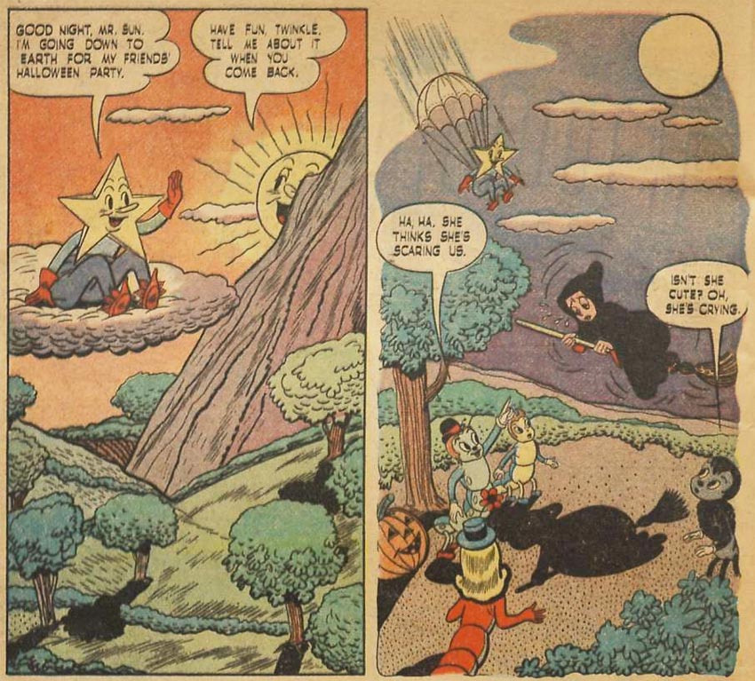In the second half of the 1940s, Herman was present in the boys' and girls' comic books of Parents' Magazine Press, again mainly as a provider of humorous back-up features. The clumsy 'Hector' (1947-1949) appeared in both Calling All Boys and Tex Granger. Hector was followed by 'Twinkle The Star That Came Down from Heaven' (1947-1948) and 'Pop and Junior' (1947-1949) in Calling All Kids, 'Billy Fairfield's Cartoons of His Own Misadventures' in Jack Armstrong (1947-1949) and the charming girls 'Tizzie' (1947-1949) and 'Polly Pigtails' (1947) in Polly Pigtails, as well as the nerdy 'Dirinda' (1947-1948) in Sweet Sixteen.