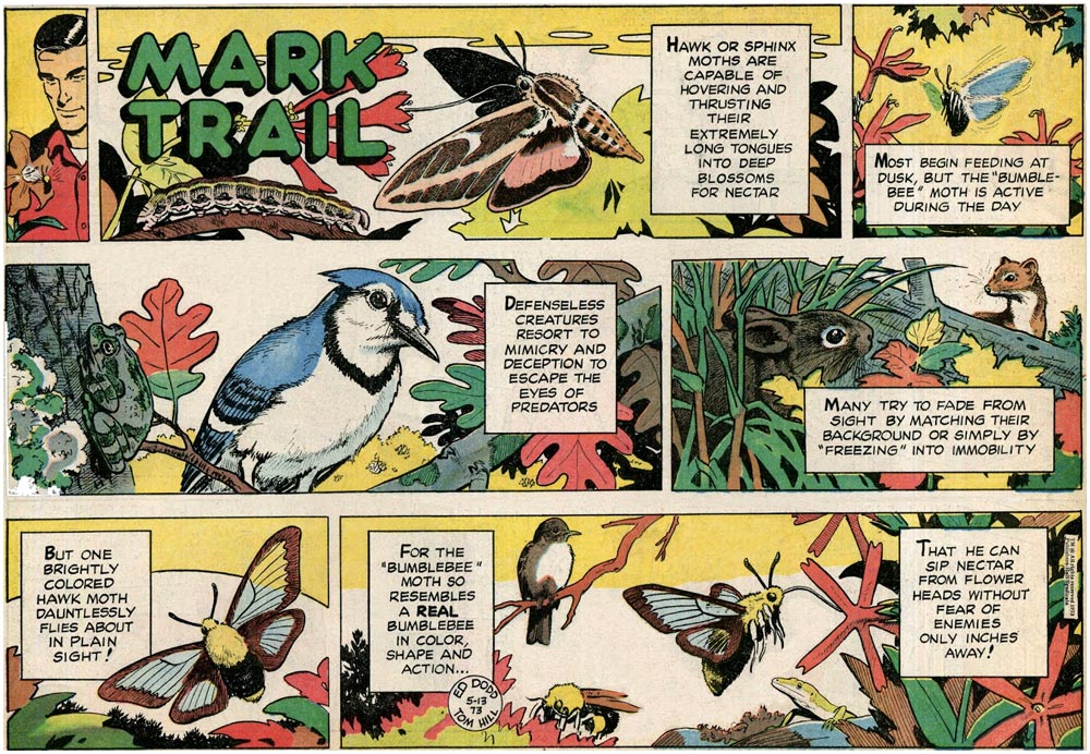 Tom Hill was an American cartoonist and naturalist from Atlanta, Fulton County, Georgia. Born Thom Jackson Hill Jr., he served in the US Navy during World War II and was the Air Medal for shooting down a number of Japanese planes. He became one of Ed Dodd's assistants on the ecological wildlife comic 'Mark Trail' in 1946. He was responsible for the art of the Sunday strip, dedicated to natural history and wildlife education. He was also involved in the artwork of the daily serials from 1950. Tom Hill passed away in 1978. 'Mark Trail' was continued by Dodd's other assistant, Jack Elrod.