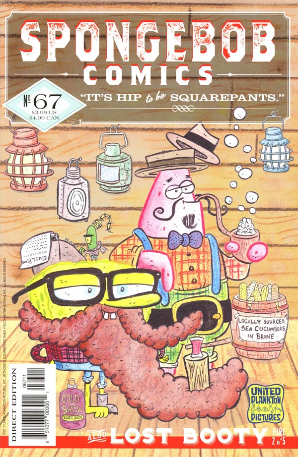 Covers for Spongebob Comics #1 (9 February 2011) and #67 (12 April 2017).