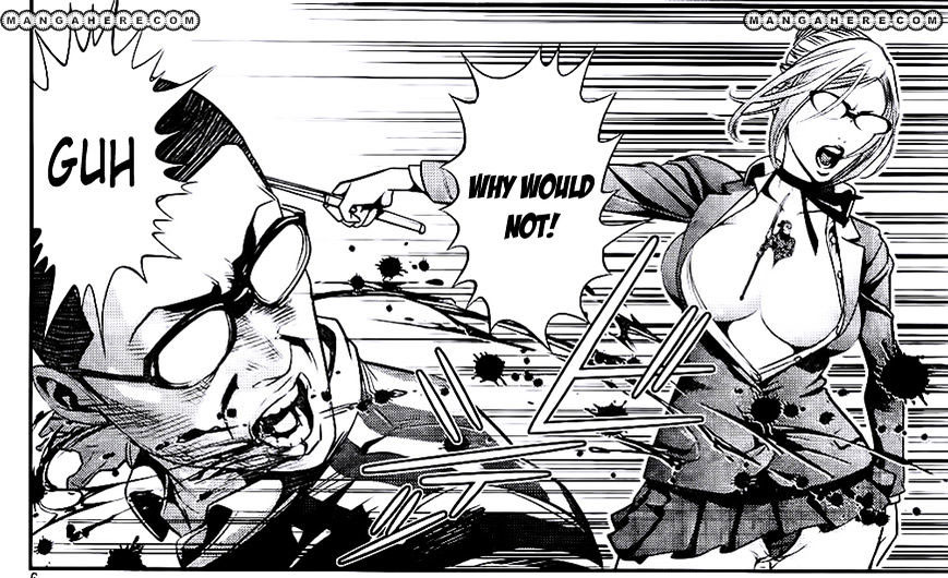 'Prison School' could be described as a high school sex comedy. Some female characters provide male fanservice by having very large breasts, like student council vice president Meiko Shirako. At the same time though, the desperate and pathetic attempts of the boys to seduce girls provide the biggest laughs. They frequently try to spy on them in the bathroom or shower section, but usually get caught by them or the sadistic principals. The disproportionate ways they are punished are always hilarious to read. In an interview, Hiramoto acknowledged that the series aimed at male readers, but at the same time the power of women to bend them to their will is a much larger theme. He named feminist series and films like 'Oshin' (1983-1984), 'Thelma & Louise' and 'Fried Green Tomatoes' as an important inspiration, since they feature women who try to survive by guts alone. Naturally prison films and series like 'Cool Hand Luke' and 'Prison Break' helped influence the atmosphere too. As a teenager, he too went to a high school where girls were in the majority, but he was too shy to address them. Much of his frustrations are the prime source of comedy.