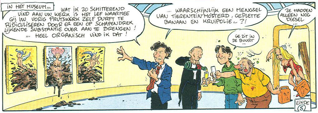 Jan Hoet appearing in the comic series 'De Geverniste Vernepelingskes' by Urbanus and Jan Bosschaert.
