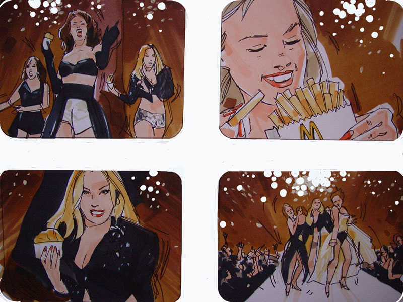 For the most part of his career, Arnold van der Hoeven was a commercial illustrator and visualizer, providing artwork for events, storyboards, presentations, routing and shop layouts, with a specialization in technical drawings and new future developments. Among his clients were the University of Wageningen (the "Farm of the Future"), Volkswagen (introduction shows for new models), Douwe Egberts (visualizations for new coffee machines) and Homebase (new ideas and sketches for routing).