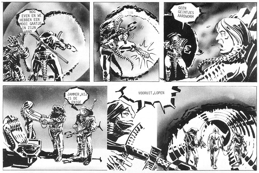 While still a student, Arnold van der Hoeven contributed comic art to the sci-fi magazine Essef, appearing alongside such comic book giants as Piet Wijn, Don Lawrence and Bert Bus. In issues #5 through #7, Van der Hoeven provided the artwork for 'De Ouden' (1978-1979), a serial about a space explorer written by magazine editor Raymond Donkersloot. Due to lack of reader support, the feature was dropped after three installments.