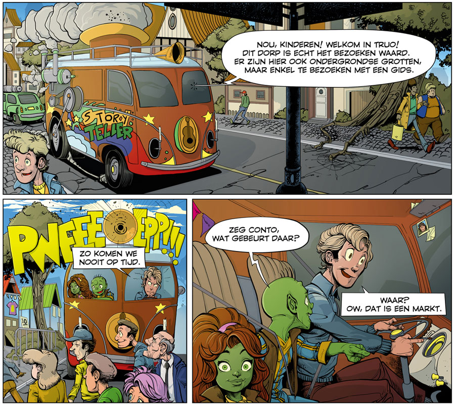 In 2017, Van der Hoeven teamed up with the Belgian comics fan and entrepreneur Dominiek Vermandere to create the humorous fantasy adventure comic series 'TrolTrol'. Written by Vermandere and drawn by Van der Hoeven, the comic's first volume initially had a digital-only release, until the print edition appeared through the authors' own Lakoro imprint in 2019. A few years later, he began contributing to Maxix magazine in collaboration with the scriptwriters Ger Apeldoorn and Willem Ritstier. Their feature 'Poh & Slim, Droomdetectives' (2022-2023) starred two detectives in 1960s San Francisco, whose investigations lead them to other dreamlike realities.