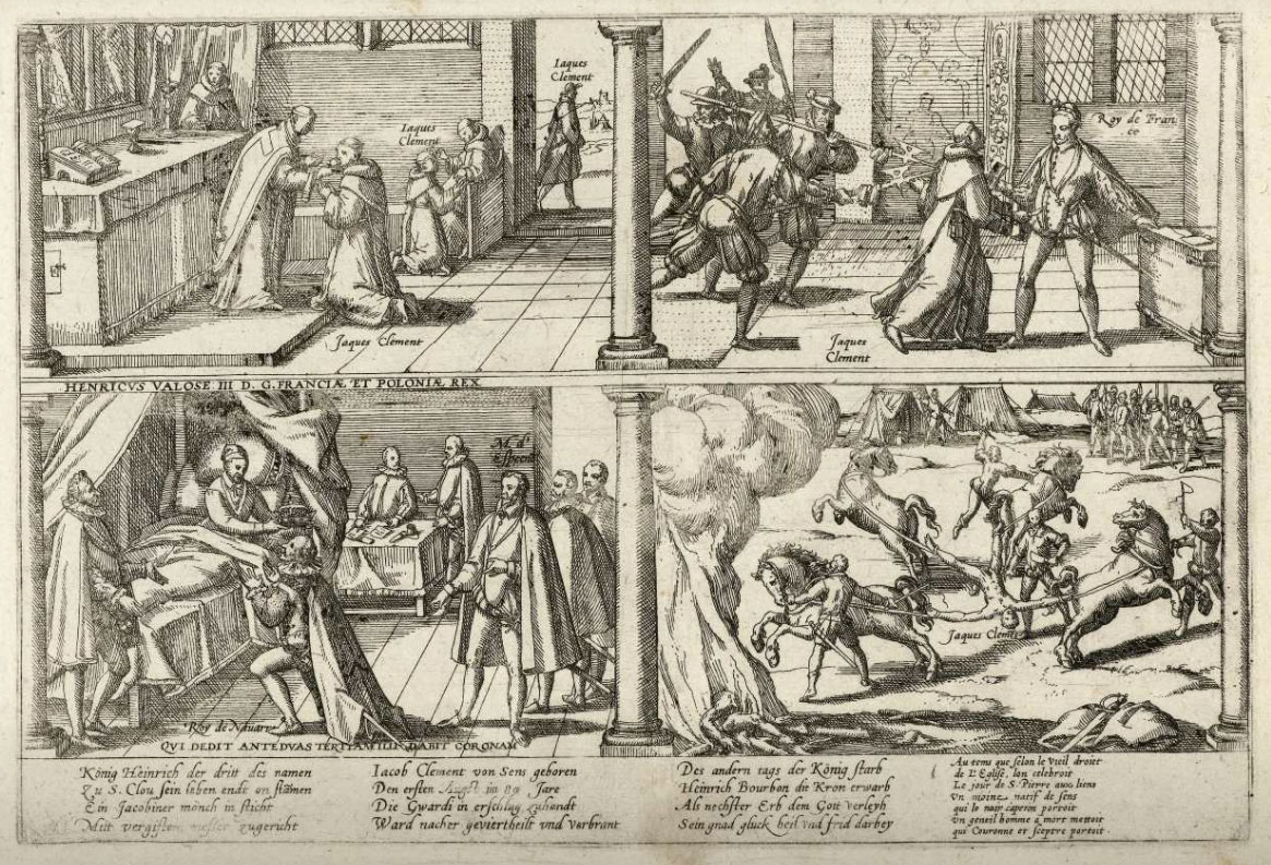 Murder of Henry III of France, by Frans Hogenberg's atelier, black-and-white version (1589).