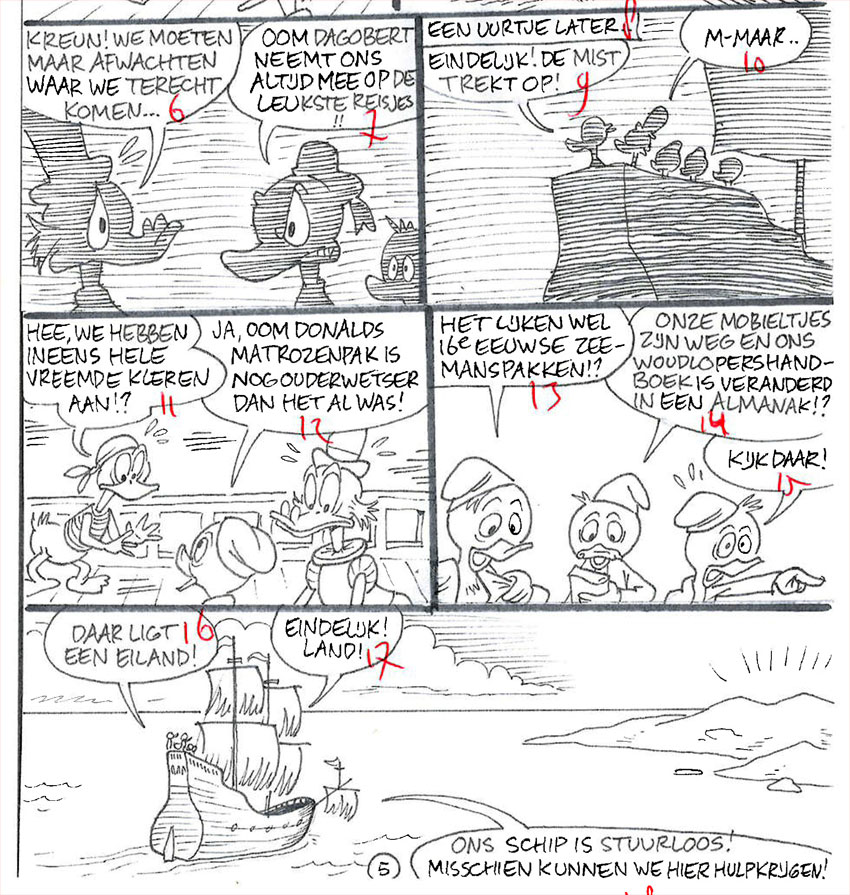 Storyboard drawings for Donald Duck script H2015-277 (final version printed in Dutch Donald Duck weekly #3, 2020).