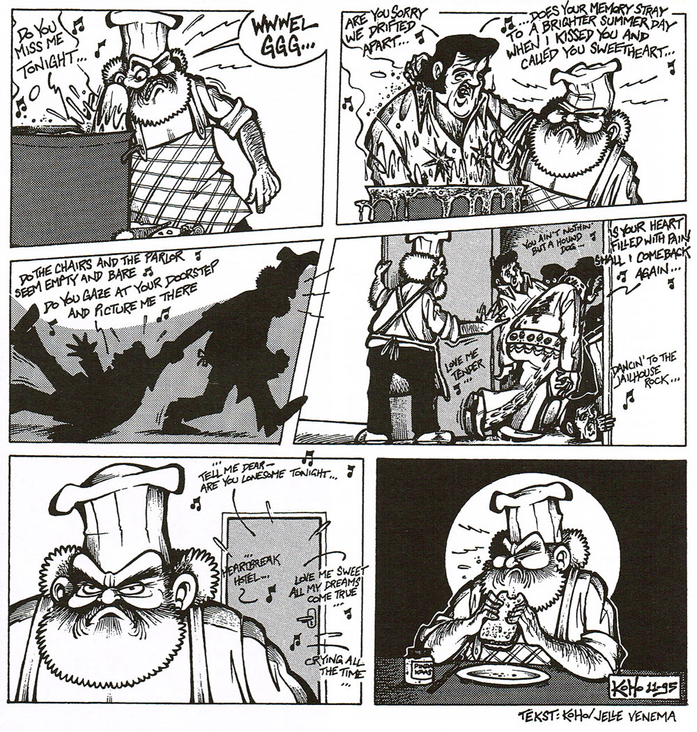 By the time Hack-tic came to an end, Hottentot ventured into the field of small press comics, often signing his work with "KoHo". He was present during the early stages of small press magazines like Robin Schouten's Incognito from Zaandam (1993), and Robert van der Kroft and Tonio van Vugt's Zone 5300 from Rotterdam (1994). In the mid-1990s, he also frequented Maaike Hartjes' De Zwarte Handel studio in Amsterdam. In addition, he contributed to Prima, the deliverer's magazine of newspaper De Telegraaf, and to Mens en Gevoelens, the magazine of Paul Haenen's Margreet Dolman persona.