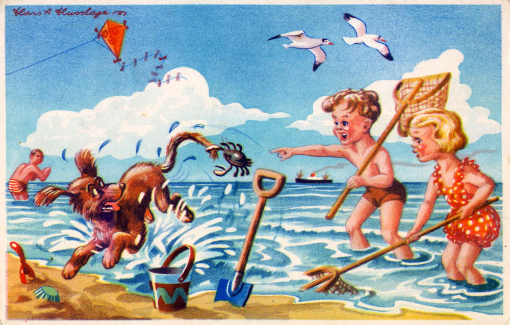 From then on, Husslage worked mainly as a commercial artist and illustrator. He is known for a series of postcards depicting funny scenes with children in idyllic, countryside surroundings, published by Mes & Bokhorst in Haarlem. For his commercial work, he often worked together with the Zaandam-based advertising designer Cees Hottentot, father of the future comic artist and folk music festival organizer Koen Hottentot.