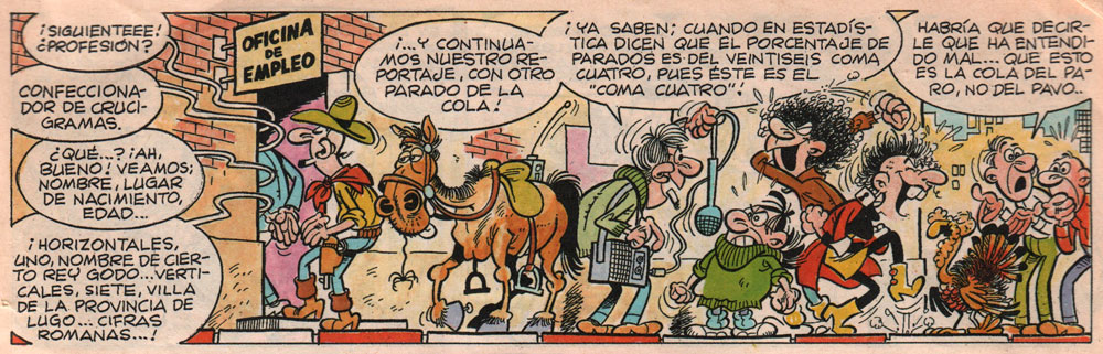 In a 2009 interview with the 'El Rincón de Mortadelón' weblog, Ibáñez described his time at Editorial Marco as a period full of camaraderie and mutual inspiration. Particularly older artists like Emilio Boix had an important influence on his work. Until 1960, Ibáñez remained a loyal contributor to publisher Tomás Marco Debón, even when he had already become a staple at the publishing house Bruguera. Among his final creations for La Risa were the family comic 'La Familia Repollino' (1958), the musketeer parody 'Los Tres Mosquitos' (1958), 'Pie Sucio' (1957) and a pantomime strip about a Mexican, 'Furgensio' (1959-1960).