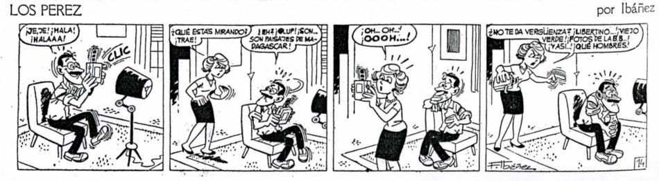 By 1960, Bruguera was offering work by its authors for international syndication through its Creaciones Editoriales agency. One of the original creations by Francisco Ibàñez for the syndicate was 'Los Pérez' (1963), a short-lived strip about the daily life of a fictional family, which offers a reflection of the Spanish society of the time.