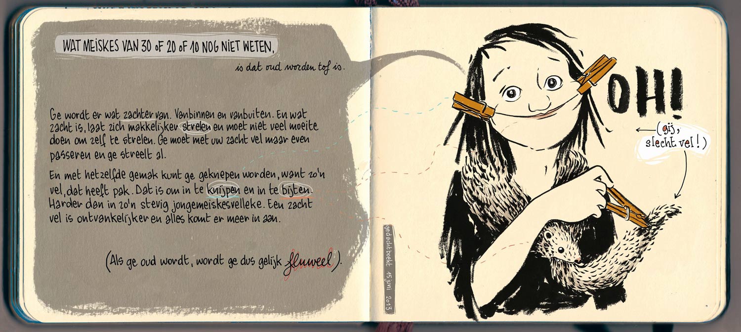llah's work has also been published in Knack, Focus Knack, Goed Gevoel, Ad Valvas, Vacature and De Standaard. In the Netherlands, she can be read in the newspaper Algemeen Handelsblad, as well as the weblogs Frontaal Naakt and GeenStijl. In French, her comics can be enjoyed in L'Écho des Savanes. Her books are published by Oogachtend in landscape format and usually accompanied by saucy titles.