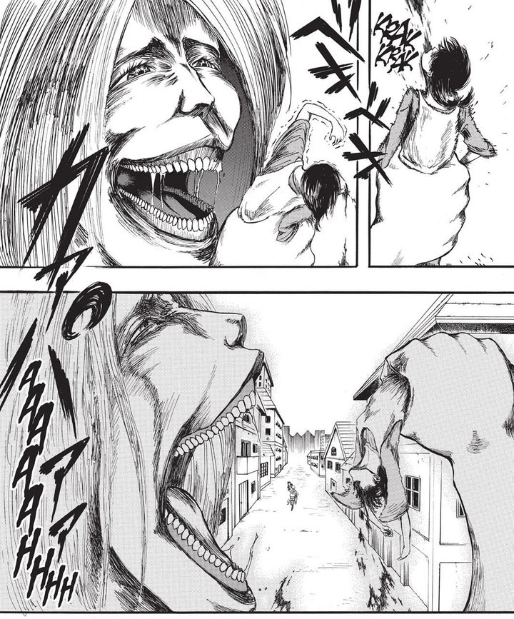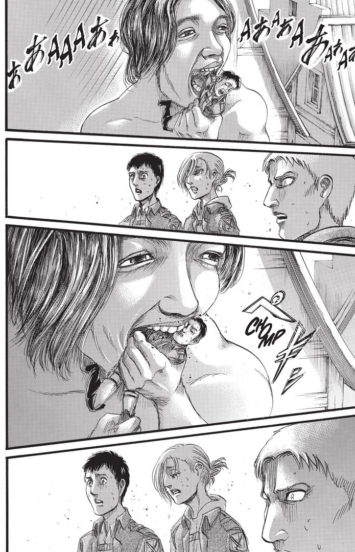 'Attack on Titan' (Chapter 77). The face of the giant is based on Attack on Titan's animation director.