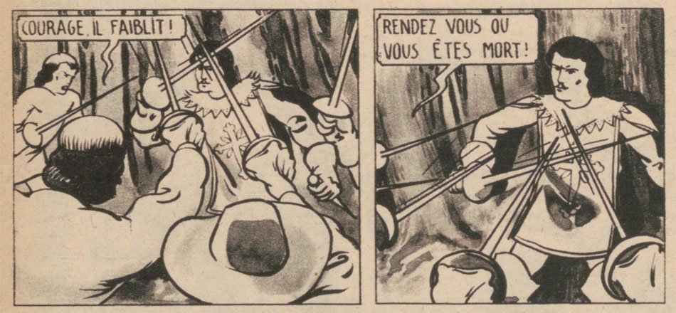 In addition to painting, Albert Jaminon spent a large part of the 1940s and 1950s doing commercial art and cartooning. In 1947, for instance, he appeared in the final issues of Grand Coeur, a short-lived comic magazine created by the cartoonist Charles Gilbert and Étienne Lamarche, publisher of the newspaper La Gazette de Liège. Starting in issue #1 of 1947, Jaminon's historical comic serial 'Une Mission du Capitaine d'Artagnan' debuted, starring the musketeer D'Artagnan, who is sent on a special mission by the French king. However, the story remained unfinished due to the disappearance of Grand Coeur after issue #9.