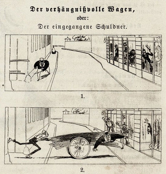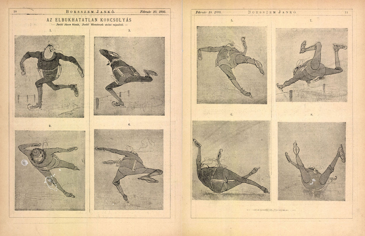 Sequential humor in Borsszem Jankó, published posthumously in 1895. The text caption reads "From the last works of János Jankó's son Elemér Jankó".