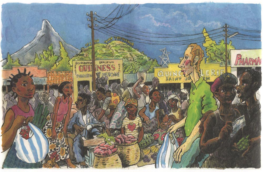 In 1990, Janssen and his wife moved to Nyundo, Rwanda, where he worked as a teacher in the local art school. They had and raised a son and a daughter there. Janssen was overwhelmed with the local culture and splendor of nature. It inspired him to make many sketches, which evolved into his first comics, though he didn't publish anything yet. Unfortunately, the country succumbed into civil war when their daughter was two months old. On 6 April 1994, unknown assailants shot down the presidential plane, killing Rwandan president Juvénal Habyarimana and Burundese president Cyprien Ntayamira inside. Centuries-old tensions between the Hutu and Tutsi population were heated by extremist propaganda, each blaming the other side. Between 500.000 and 1 million people were murdered in one of the worst genocides in history. As foreigners, Janssen and his family weren't safe from violence. They hid below the sink of their home, because it was the only place where they would be safe from bullets. The next morning they fled to the neighboring country Congo and took the first plane to Belgium.