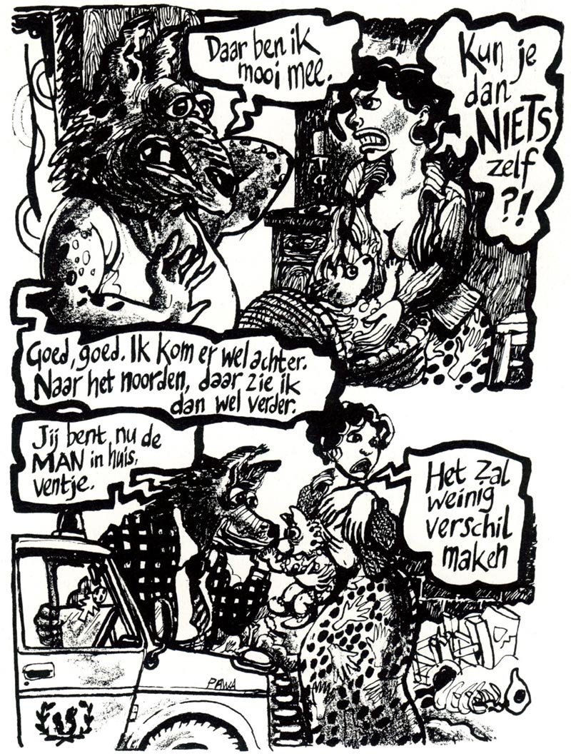 Janssen also showed compassion for his fellow countrymen with two graphic novels about Doel, a village which has been threatened with demolition for more than half a century. In the 1960s the Antwerp city council had plans to expand their harbor and dispossess the citizens of Doel. This led to a lot of protest and political turmoil. Many people expressed solidarity with Doel. The novel 'Terug naar Oosterdonk', written by Guido van Meir (who also wrote the comic book 'Pest in 't Paleis', 1983, illustrated by Jan Bosschaert) was inspired by it and adapted into a TV series 'Terug naar Oosterdonk' (1997) by Frank van Passel. Documentary maker Manu Riche made the 2015 film 'Oratorium zonder Doel'. Over the decades, many people left the village, which effectively became a ghost town and a haven for squatters. Only fairly recently, in 2018, it was decided to save Doel as it is.
