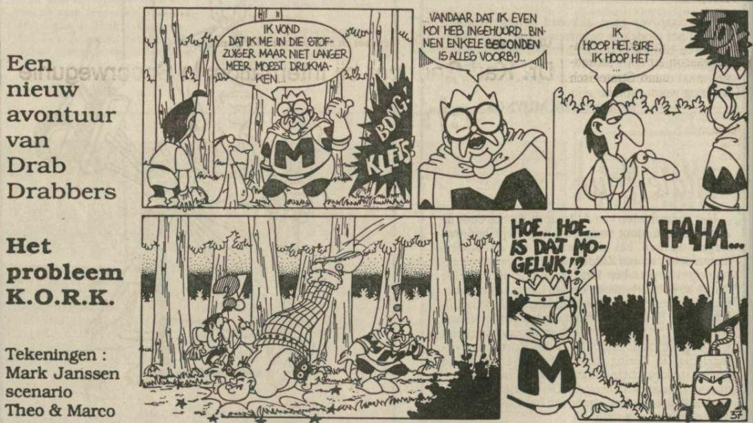 In the late 1980s, Janssen was a cartoonist for KIK, the youth supplement of Gazet van Antwerpen, where his humorous adventure comic series 'Drab Drabbers' ran until the mid-1990s. About 28 stories were serialized, written by "Theo & Marco", but never collected in book format. Janssen claimed that the editors promised to have their publishing company De Vlijt release the stories in album format, yet never actually did so. Instead, the series was canceled.