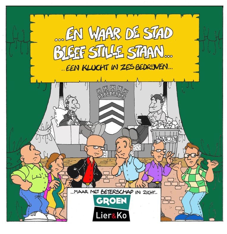 Since 1994, Janssen has made several propaganda comic books to support the environmental political party Groen! in Lier. These were all traditionally published during the council elections. His 1994 book promoted local candidate Paul Hermans, and the 2000 one Elly Vermeire. In 2006, the party itself was the subject. In 2016, Janssen made the satirical propaganda comic book '... En Waar De Stad Bleef Stille Staan... Een Klucht In Zes Bedrijven' ("...And Where the City Stood Still... A Farce in Six Acts"). Written by party politician Jan Hermans, the story stars Pallieter, a literary character created by the Lier-born novelist Felix Timmermans (who is also the father of the previously mentioned cartoonist GoT). He finds out that a lot of things in his beloved city aren't going well, but in the end - predictably - a better future appears to be possible if people vote for Groen!. The comic book was distributed in a print run of 16,000 copies. Other Belgian cartoonists who have made party propaganda comics were Rik ClémentLuc Cromheecke, Shirow Di RossoIan and Geert Kinnaert.