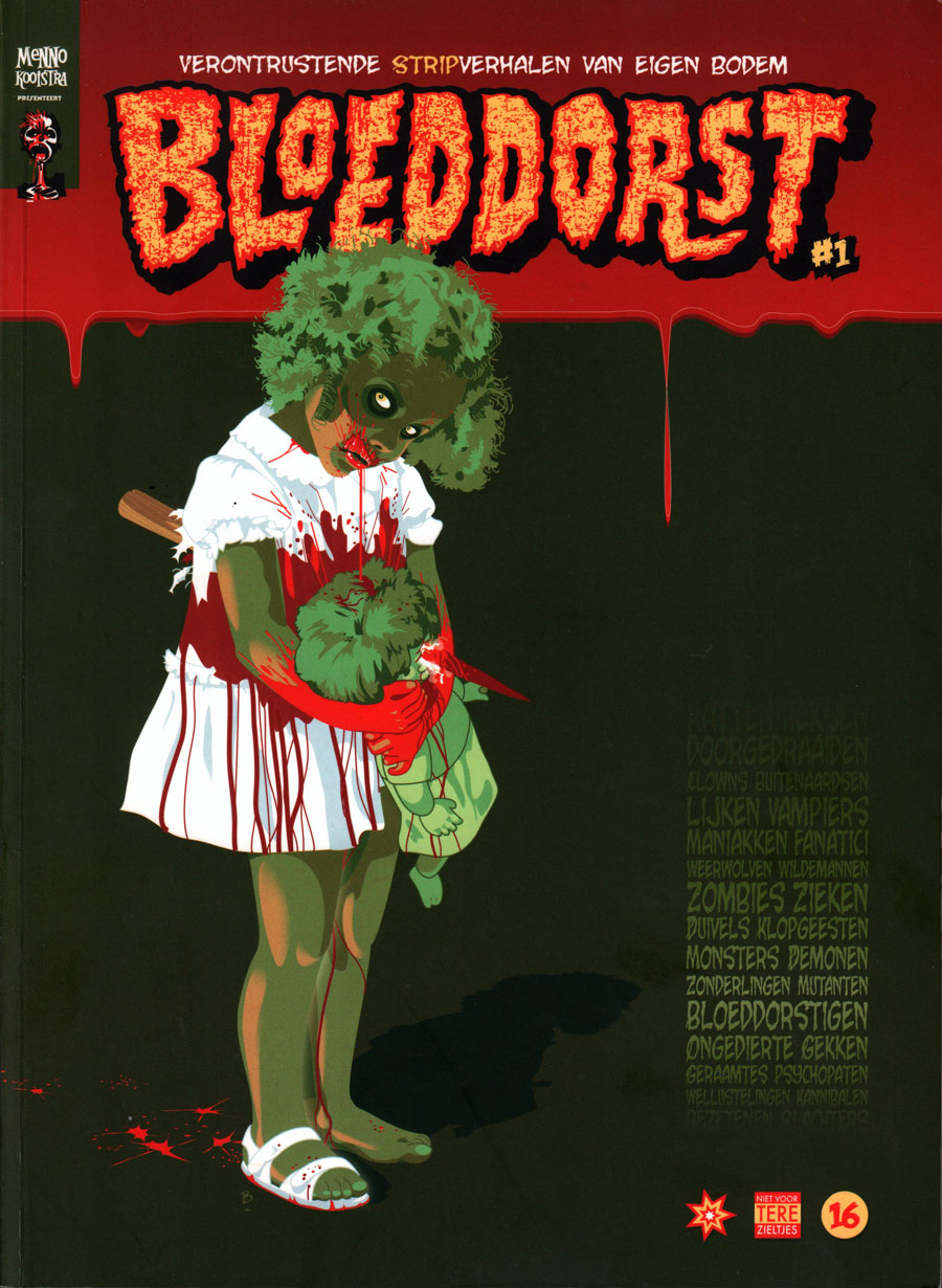 Since 2007, Janssens has largely left the comic industry, his only excursions being his contributions to the horror comics anthology series 'Bloeddorst', edited by Menno Kooistra. For the first volume in 2007, he made the short story 'IJskoud', as well as the zombie cover illustration. It took until 2024 before Janssens and Kooistra teamed up again to create a second volume of 'Bloeddorst', gathering a list of contributors from both the Dutch/Belgian movie and comic scenes. Experimenting with the AI tools GPT-5 and OpenArt, Janssens created the short story 'Het Nest'. He also provided much of the anthology's promotional art, including zombified caricatures of the initiators Menno Kooistra, Martin Koolhoven and himself. On Friday 3 October 2025, 'Bloeddorst #2' was festively presented in De Nieuwe Anita in Amsterdam.