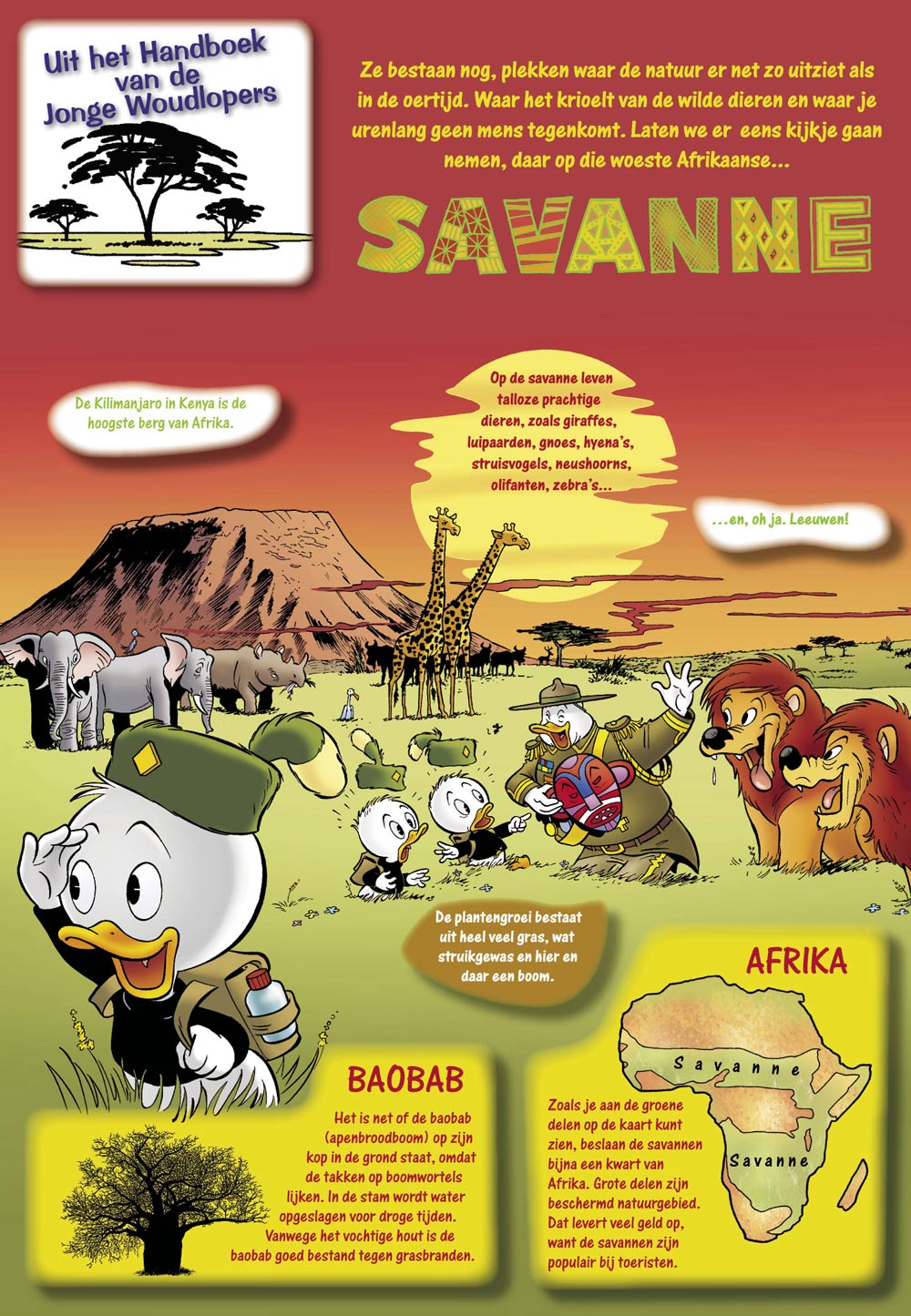 Cover illustration for Donald Duck Extra #8, 2002 and the 'From the Junior Woodchucks Guidebook' column in the Dutch Disney weekly Donald Duck.