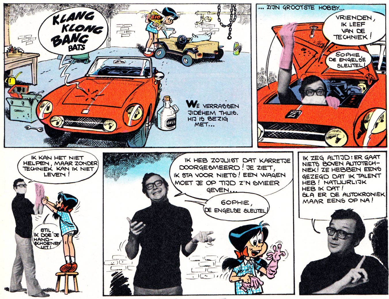 Jidéhem performing with Sophie in the photocomic 'Carrosseries en vrac' (Robbedoes/Spirou #1724, 29 April 1971).