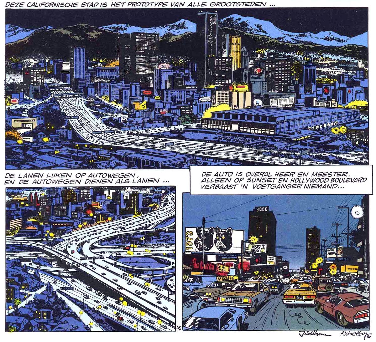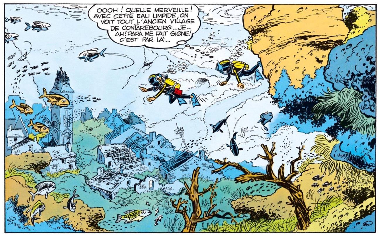 Although Jidéhem has never become a household name like his contemporaries Franquin, Tillieux and Peyo, he has left his mark on Belgian comics. He was widely praised by his colleagues for his high quality background art and technical drawings. It was Jidéhem who inspired Franquin to find joy in making these kinds of drawings as well. His way of staging, his precise backgrounds and his finely caricatured vehicles set a new standard for background art in Spirou magazine. Traces of Jidéhem's influence can be found in the work of Janry, Didier Conrad, François Walthéry, Olivier Schwartz, Yoann, Stéphane Colman, Simon Léturgie and Bruno Gazzotti.
