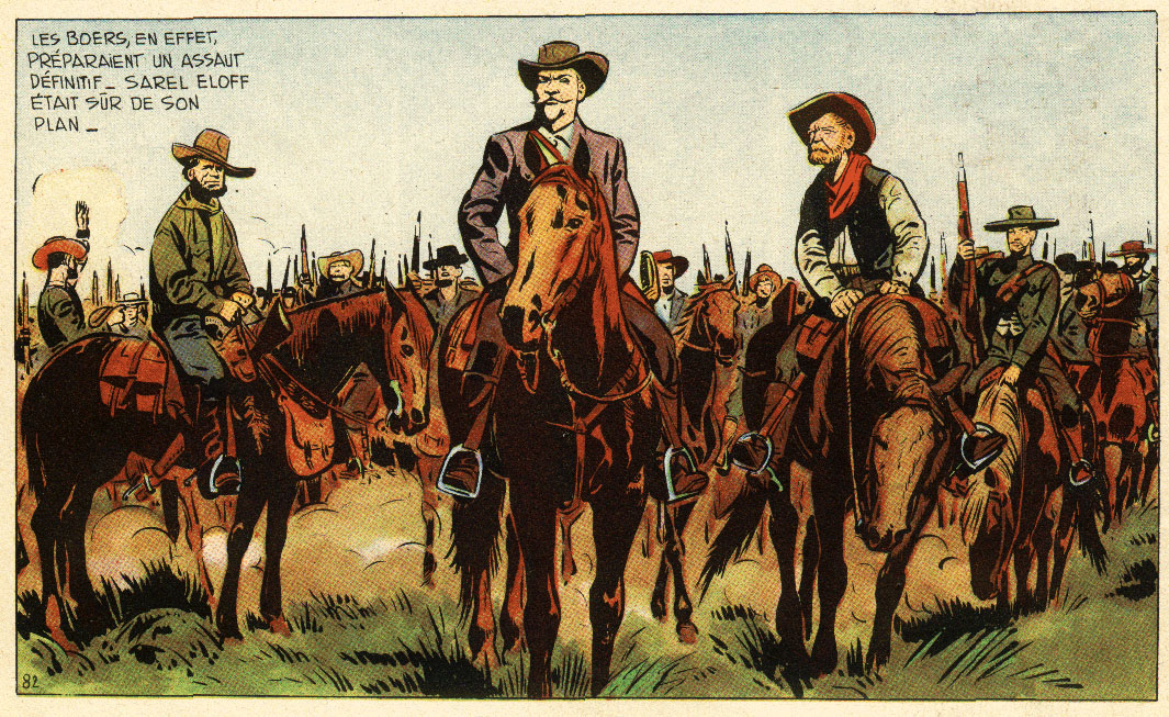 In 1959, Spirou published another comic biography by Jijé, this time about Charles de Foucauld, a French Catholic priest who lived among the Tuareg people in the Sahara in Algeria. In 1964, the Spirou editors introduced Jijé to the young artist Herbert Geldhof, who signed as Herbert. Together, Jijé and Herbert created the artwork of two stories starring 'Docteur Gladstone' (1964-1965), a European medical doctor in Africa. Written by Charles Jadoul, Jijé drew the white characters, while Geldhof did the black ones and the backgrounds. Four additional 'Docteur Gladstone' stories appeared in Spirou until 1971, by then drawn solely by Herbert Geldhof. Despite all of his own projects, Gillain found the time to fill in for his former pupil Jean Giraud, drawing several pages of the 'Blueberry' stories 'Tonnerre à l'Ouest' (1964) and 'Le Cavalier Perdu' (1965) in Pilote magazine. Also for Pilote, he filled in on the 'Barbe-Rouge' episode 'Le Pirate Sans Visage' (1966), when the regular artist Victor Hubinon had broken his arm.