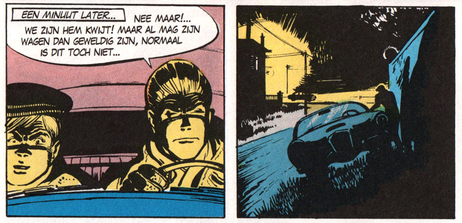 By the mid-1950s, Jijé felt he had outgrown humorous comics, and fully devoted himself to more serious stories, with realistic artwork. Dropping 'Blondin et Cirage', he returned to another one of his previous heroes, Jean Valhardi. Years had passed since he had last drawn his two-fisted insurance investigator, and much had changed. Under the reign of his successor Eddy Paape and scriptwriter Jean-Michel Charlier, the series was developed into a full-blown detective series, with thrilling stories filled with sci-fi and Cold War-inspired themes. Jijé wanted his old series back, and the publisher - owning co-creator Jean Doisy's part of the rights - was eager to oblige. Paape was let go, and Jijé embarked upon the character's third artistic make-over. In the new Jijé stories, Valhardi no longer worked for the insurance agency, but for hire as a freelance detective. The series got a modern and cosmopolitan look and feel, inspired by the trends of the decade. Valhardi replaced his trademark suit and raincoat for blue jeans, a yellow pullover and a white jacket, and he drove around in sports cars. Previous sidekicks like Jijé's orphan boy Jacquot and Paape's klutzy Arsène were dropped, making space for the clumsy photographer Gégène as the series' comic relief.