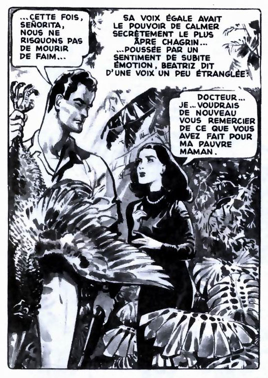 While Jijé maintained a presence in Spirou with his three major series, he also undertook other projects and assignments. From 1950 on, he made regular appearances in the other Dupuis magazines, Le Moustique and Les Bonnes Soirées, mostly with illustrations. Between November 1951 and September 1952, he illustrated a serialization of Alexandre Dumas' classic novel 'Count of Monte Cristo' for Le Moustique. For the women's weekly Bonnes Soirées, he made a comic version in ink wash of Flora Sabeiran's sentimental novel 'El Senserenico', serialized between October 1952 and February 1953. Between February and November 1954, Jijé returned to the pages of Le Moustique with 'Blanc Casque' (1954), a comic based on the novel 'Elle Vit!' by Joseph Pirot, a Walloon missionary in Canada and a friend of Gillain's father. The emotional story revolves around a Hungarian family that emigrated to western Canada, where the father Jean Choumak drifts between good (honesty) and evil (alcoholism). In 1956, Dupuis released the story in book format. By request of Éditions Lombard, Jijé began working on a comic based on the life of Saint Bernadette of Lourdes (1844-1879). Although the May-October 1958 serialization in Line magazine remained unfinished, 'L'Étrange Destin de Bernadette' was eventually published in full in a 1979 book collection by Éditions Fleurus.