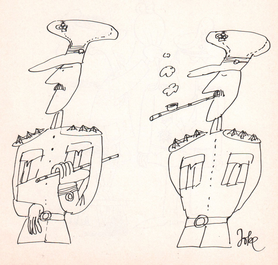 Joke was born in 1934 in Bruges, in the coastal province West Flanders, as Jo Lagrillière. He studied in Antwerp, where he decided to stay because he enjoyed the atmosphere. Later he moved again, this time to Hoboken, a town outside Antwerp. Among his graphic influences were Saul Steinberg, Tomi Ungerer and André François.