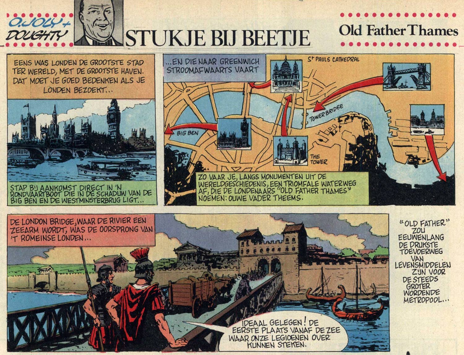 Between 1980 and 1982, a new educational series appeared in Spirou named 'Histoire en Mille Morceaux', once again scripted by Octave Joly but drawn by an artist known only as Doughty. The feature still had Oncle Paul as a mascot, but merely consisted of one-page historical anecdotes. The series also ran in Spirou's Dutch-language edition Robbedoes under the title 'Stukje Bij Beetje'.