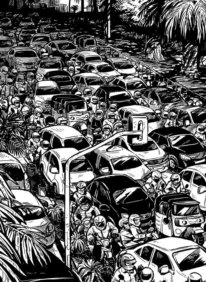 Besides work of fiction, De Jongh has also made her mark in the field of graphic journalism. In October 2017, the cartoonists De Jongh, Mei-Li Nieuwland and Judith Vanistendael headed for the Greek island Lesbos. Their mission was to make comic reports and an artist's impression of life in the refugee camp Kara Tepe, where filming and photography are not allowed. The moving reports of De Jongh and Nieuwland were published on the website of newspaper NRC on 22 December 2017. Vanistendael's chronicle appeared on 9 December in the Flemish newspaper De Standaard. Her next solo graphic novel project was also more personal, and shows connections with comics journalism. The autobiographical 'Taxi!' (2019), subtitled "Stories from the Back Seat", chronicles conversations between De Jongh and cab drivers in four major cities: Los Angeles, Paris, Jakarta, and Washington, DC. Besides the colorful and open-hearted stories of the drivers, the author gives vulnerable insights about her own prejudices and personal life too, against the streetscapes of these four cities. In May 2019, the book was released in Dutch by Scratch Books. An English translation came in September 2019 at the Canadian publisher Conundrum Press, receiving praise from the pioneer of graphic journalism, Joe Sacco.