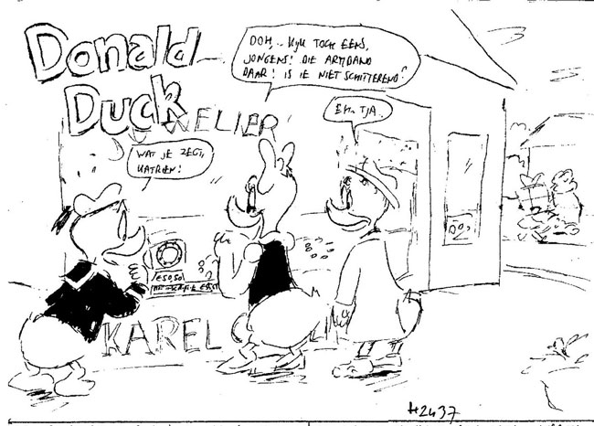 Script panel for a Donald Duck story, with scribbles by Frank Jonker.